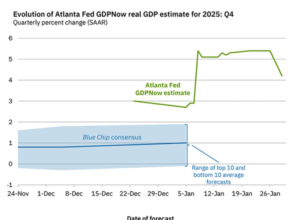 The GDPNow model estimate for real GDP growth (seasonally adjusted annual rate) in the fourth quarter of 2025 is 4.2 percent