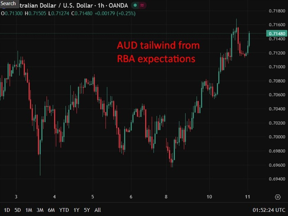 The remarks have triggered a noticeable shift in market expectations around the RBA’s next move. Interest-rate markets now imply roughly a 70% probability of a rate hike at the March 17 policy meeting, compared with far lower odds before Hauser’s comments.