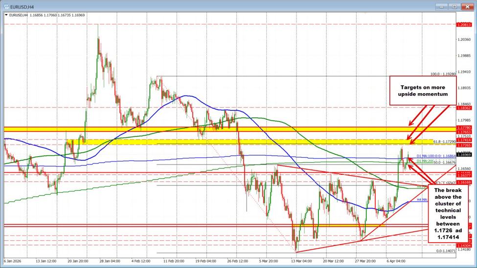 Earlier in the US session, the initial break above this zone failed, with price rotating back toward the 200-day MA. However, renewed momentum—driven in part by the shifting geopolitical tone—has pushed the pair back above the cluster.
