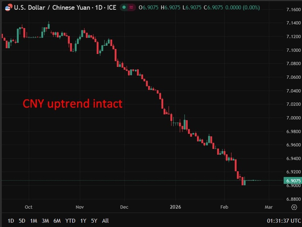 At the same time, currency dynamics have complicated the policy outlook. The yuan has strengthened in recent months, aided in part by a softer U.S. dollar. The central bank manages the currency within a daily trading band of 2% on either side of a reference midpoint (today’s is here), and officials have recently set that midpoint stronger, moving it below the symbolic 7-per-dollar level for the first time in nearly three years.