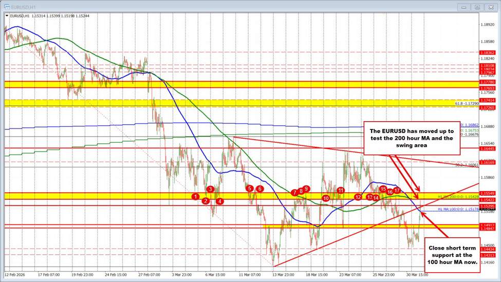 However, the rally ran into resistance at the 200-hour moving average near 1.1543, and that level has done its job—for now—stalling the upside move.