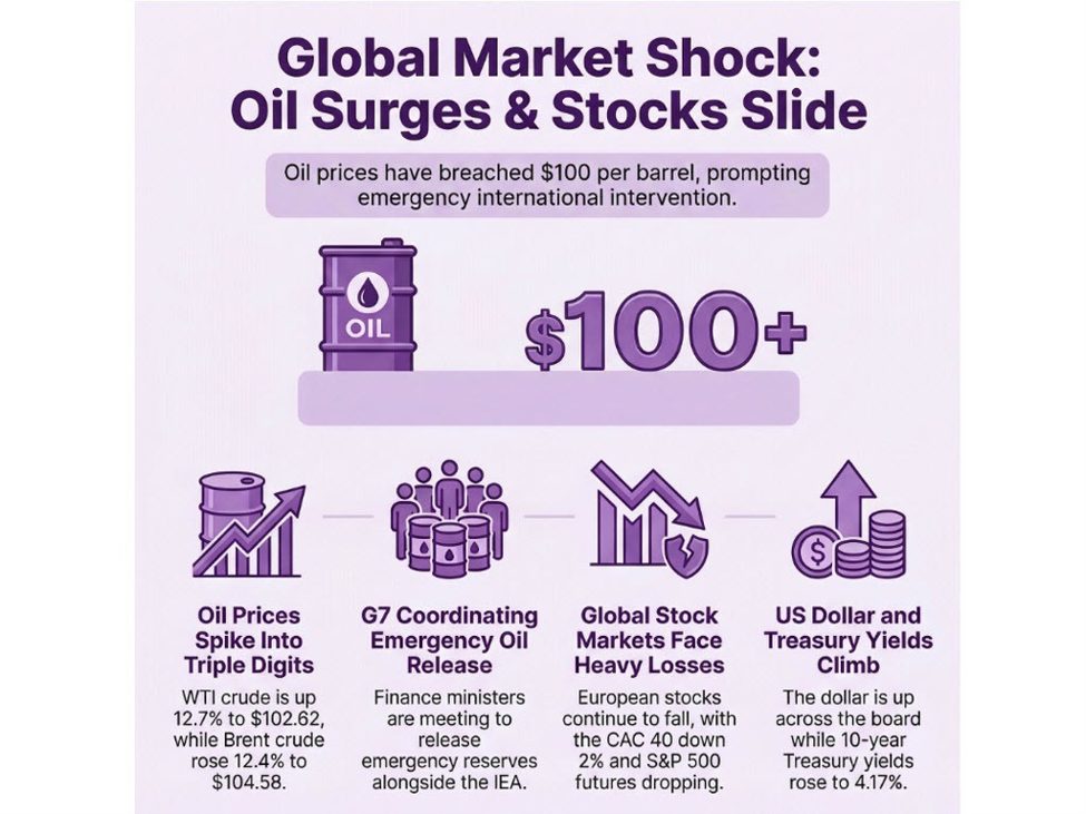 - WTI crude oil up 12.7% to $102.62, Brent crude oil up 12.4% to $104.58