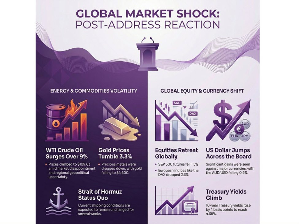 If yesterday was all about the anticipation ahead of US president Trump’s address on the Iran situation, today is all about the disappointment to that. While Trump tried to pave the way to declare victory soon, he still said the US needs 2-3 more weeks to clean up operations in Iran. And that’s not exactly the kind of timeline that markets want to hear at this point in time.