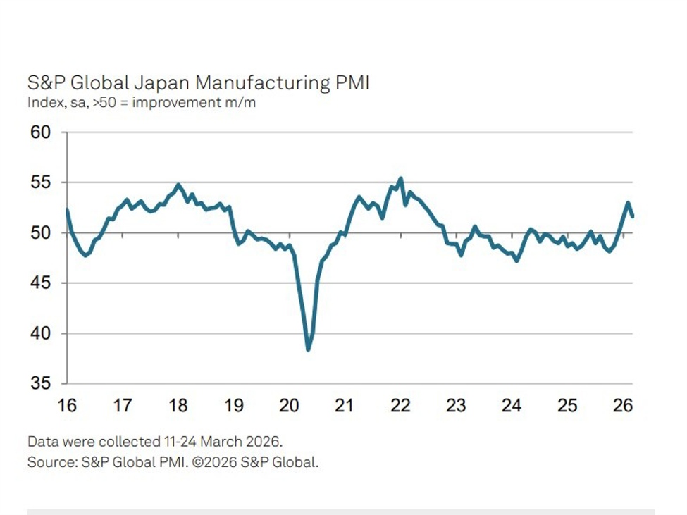 Japan’s manufacturing sector remains in expansion but is losing momentum as cost pressures rise and confidence weakens, with the Middle East conflict feeding through into inflation and uncertainty.