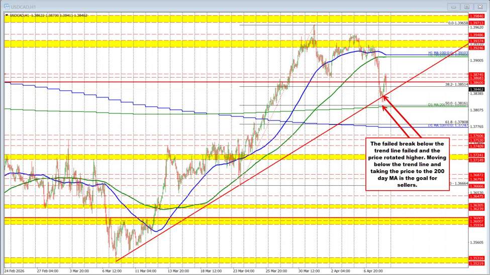The USDCAD is lower but it is seeing more of a bounce. What would worry the seller?