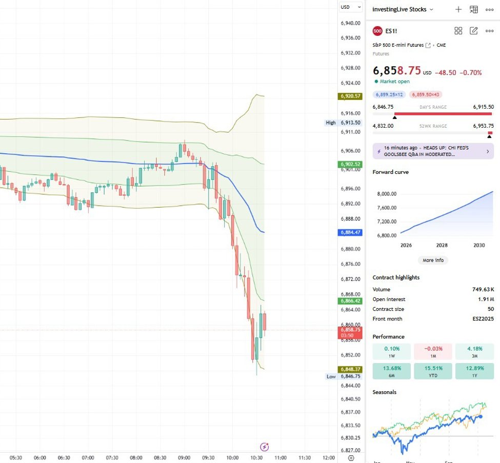 As market rotation may be intensifying and silver, the new black in metals (for quite some time now) skyrockets to a new high (don’t forget my long term target for silver), I wanted to access investingLive’s orderFlow Intel to see if the early selling today was intense under the hood. At the time of analysis, the S&P 500 futures are trading near 6,858, which is an important reference point for both short term traders and swing focused investors. This level represents yesterday’s value area low, and it is also a naked level, meaning it has not been fully tested since it was formed. These areas often attract attention because they can act as temporary stopping points, reaction zones, or decision points for the next directional move.
