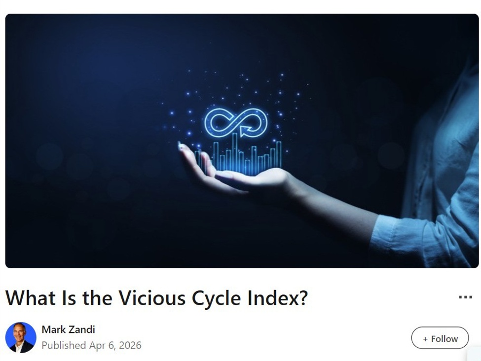 Zandi places recession probabilities at close to 50%, supported by both traditional models and newer indicators. Among these is a newly developed measure—the Vicious Cycle Index (VCI)—which he argues provides a more accurate read on labour market conditions in the current environment.
